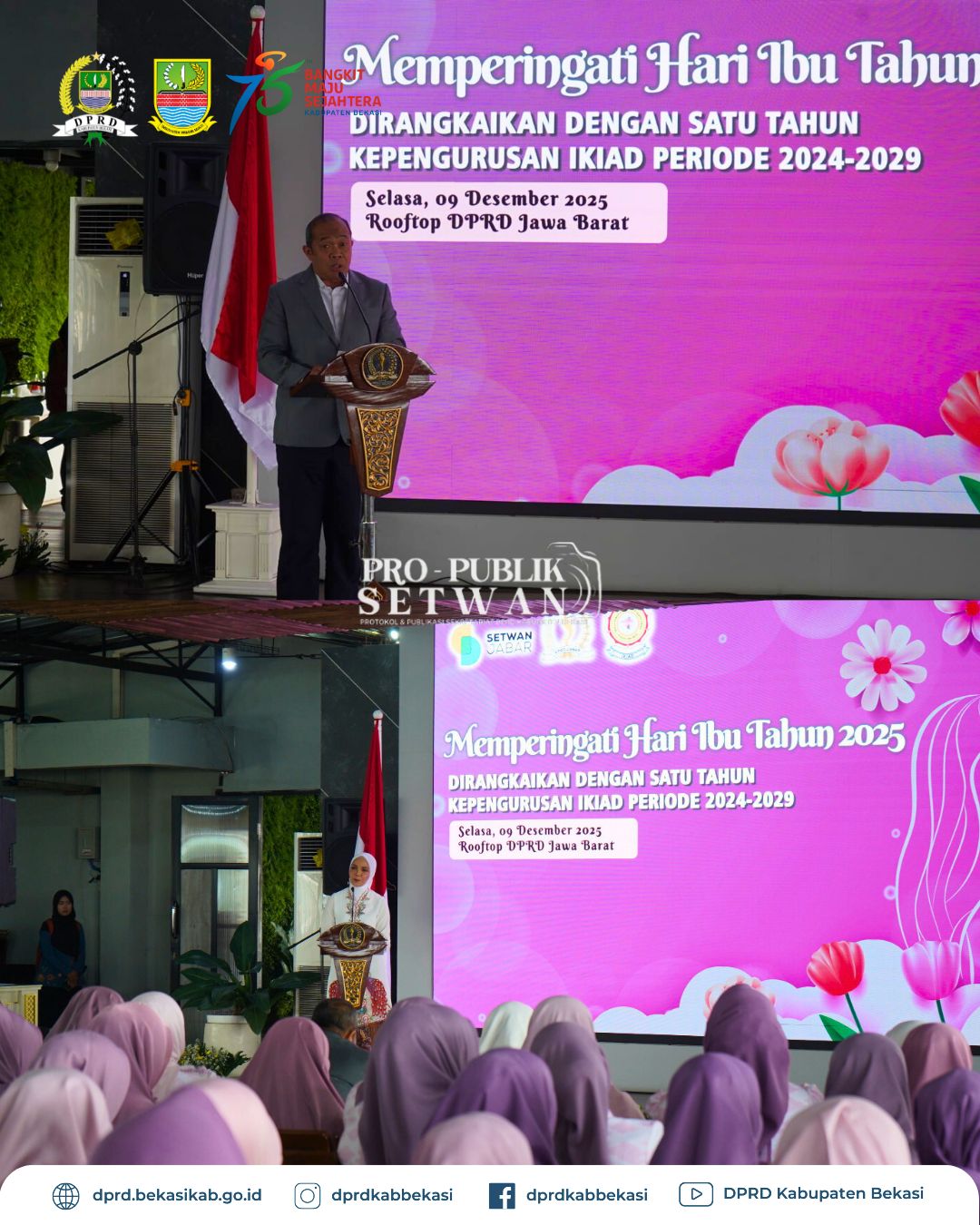 Ikatan Kekeluargaan Istri dan Anggota Dewan Perwakilan Rakyat Daerah (IKIAD) Kabupaten Bekasi menghadiri Peringatan Hari Ibu tahun 2025 dan Satu tahun kepengurusan IKIAD Provinsi Jawa Barat periode 2024-2029. Acara berlangsung di gedung DPRD Provinsi Jawa Barat, Bandung (09/12/2025).